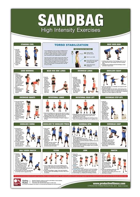 Read Sandbag High Intensity Exercises - Laminated Workout Poster / Chart - Strength & Cardio Training - Core - Chest - Legs - Shoulders & Back - Build Muscle - With Sandbag Training - 18”x24" mobipocket